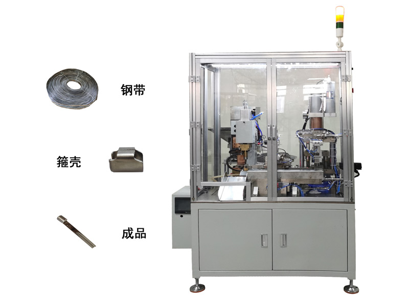 Thiết bị này được sử dụng để tự động lắp ráp và hàn dây thép và đầu kẹp của kẹp cổ kiểu Đức. Vỏ kẹp được cấp liệu bằng đĩa rung, dây thép được cấp liệu bằng động cơ servo, có thể sản xuất các sản phẩm kẹp cổ có kích thước đường kính (mm) từ 12 đến 90.